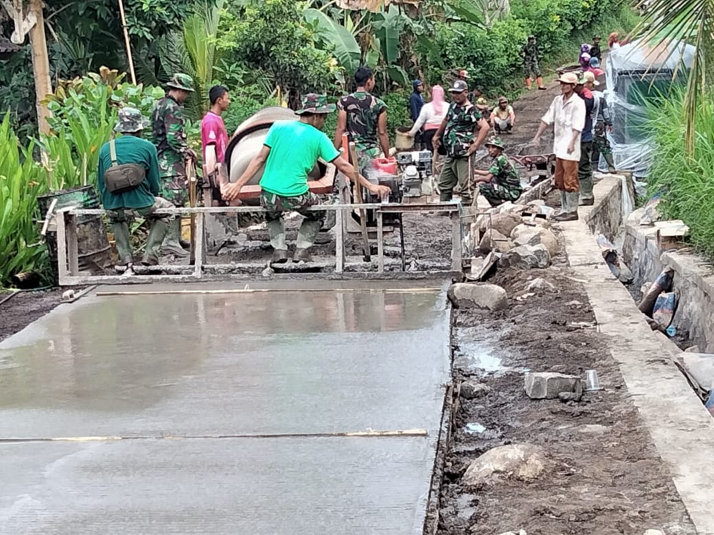 Warga Bersama TNI Berbaur Kebut Penyelesaian Rabat Beton TMMD Kodim Jembrana
