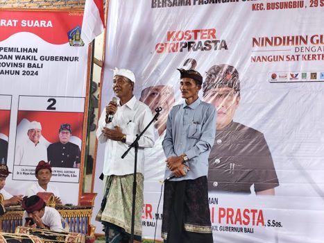 “Kami sudah merasakan bantuan pak Gubernur 2018-2023 (Wayan Koster). Semua warga sampaikan terima kasih. ke depan Pak Yan, dokter Sudjitra diharapkan semua jaya dan menang. kami masih tetap jalankan program Pak Koster hingga saat ini. Belum tergantikan. Adat Bali semenjak Pak Wayan jadi Gubernur sudah terlindungi, ” Katanya.