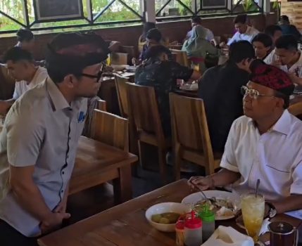 Bahkan saat dirinya sedang asik menyantap hidangannya, tak sedikit pengunjung yang sebagian besar warga Kota Denpasar tersebut mendatangi meja makan Wayan Koster untuk meminta bersalaman atau menyapa.