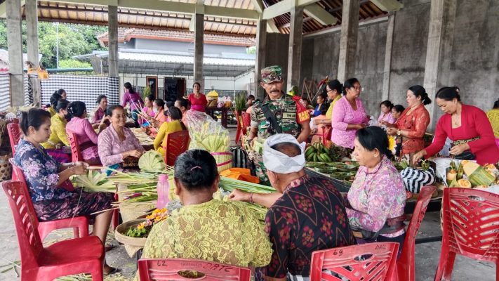 Persindonesia.com Jembrana, Babinsa Tegalcangkring Koramil 1617-02/Mendoyo Serda Suwardi turut hadir dan memantau berlangaungnya prosesi persiapan mengias dalam rangka Piodalan yang akan dilaksanakan pada hari Rabu, 23 Januari 2023 bertempat di Pura Dalem dan Pura Puseh Lingk. Delod Bale Agung, Kel. Tegalcangkring, Kec. Mendoyo, Kabupaten Jembrana, Sabtu (21/01)2023)
