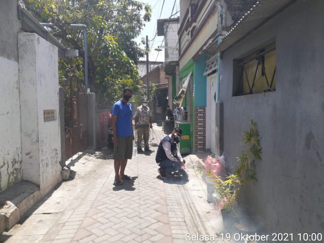 Surabaya,Persindonesia,- Menghadapi datangnya musim penghujan warga setro mengantisipasi dengan melakukan penyemprotan fogging di lingkungannya, Selasa, 19/10/2021