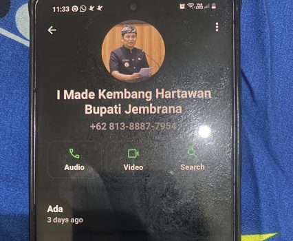 Persindonesia.com Jembrana – Beredar sebuah akun nomor WhatsApp dengan mengatasnamakan Bupati Jembrana, I Made Kembang Hartawan.