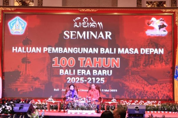 Denpasar – Presiden Ke-5 Republik Indonesia, Ibu Prof. Dr. (HC), Hj. Megawati Soekarnoputri, membuka secara resmi Seminar Haluan Pembangunan Bali Masa Depan, 100 Tahun Bali Era Baru, pada hari Jumat (Sukra Umanis, Klawu), 5 Mei 2023 didampingi Gubernur Bali, Wayan Koster bersama Wakil Gubernur Bali, Tjokorda Oka Artha Ardana Sukawati yang ditandai dengan pemukulan kulkul bertempat di Hotel Trans Resort, Bali.