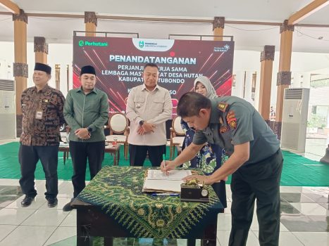 SITUBONDO, Persindonesia.com – Sebagai langkah nyata dalam mendukung pengelolaan hutan yang berkelanjutan, Lembaga Masyarakat Desa Hutan (LMDH) Rengganis dan Perkumpulan Tani Dewi Rengganis, desa Baderan dan Taman kursi, kecamatan Sumbermalang, Kabupaten Situbondo secara resmi menandatangani perjanjian kerjasama dengan Perum Perhutani Kesatuan Pemangkuan Hutan (KPH) Bondowoso. Acara penandatanganan ini dilaksanakan di Balai Pendopo Bupati Situbondo, dan dihadiri oleh Bupati dan Wakil Bupati Situbondo, Ketua DPRD, Sekda, Forkopimda, Forkompincam, Adm Perhutani Kph Bondowoso, Banyuwangi Utara, Probolinggo dan jajaran manajemen Perhutani, serta tokoh masyarakat sebanyak 300 orang.