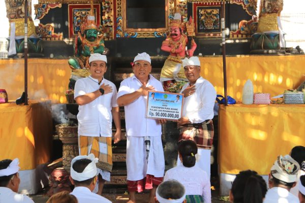 Menutup kegiatan Tirta Yatra di Pura Agung Pulaki Grokgak, Buleleng, Bupati I Nengah Tamba didampingi Wakil I Gede Ngurah Patriana Krisna memberikan bantuan dana hibah sebesar Rp 90 juta, yang diterima langsung oleh pengempon Pura Agung Pulaki Jro Nyoman Bagiarta.