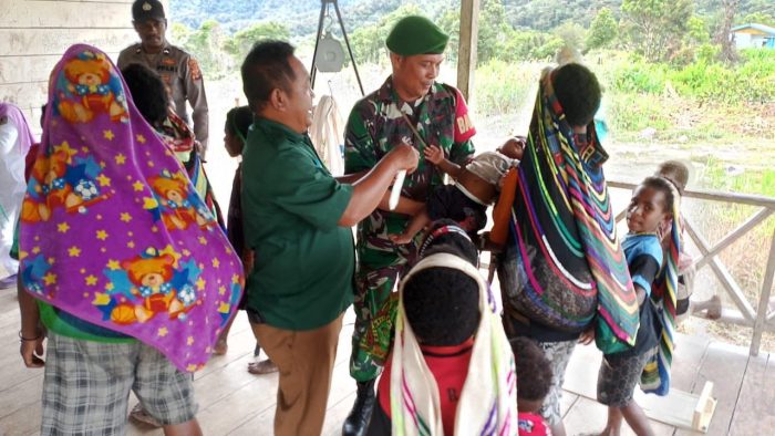 Persindonesia.com Timika – Babinsa Koramil 05/Jila Kodim 1710/Mimika Serda Ahmad Zaini mendampingi kegiatan Posyandu Balita yang dilaksanakan di Kampung Pasir Putih, Distrik Jila, Kab. Mimika, Kamis (22/2/2024).