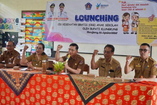 PersIndonesia.Com,Klungkung- Bupati Klungkung, I Made Satria melaunching program Cek Kesehatan Gratis (CKG) untuk anak sekolah di SD Negeri 2 Bakas, Kecamatan Banjarangkan, Klungkung.Peluncuran program cek kesehatan gratis ditandai dengan pemeriksaan anak mulai dari berat badan dan tinggi badan, pada hari Senin, 11 Agustus 2025.